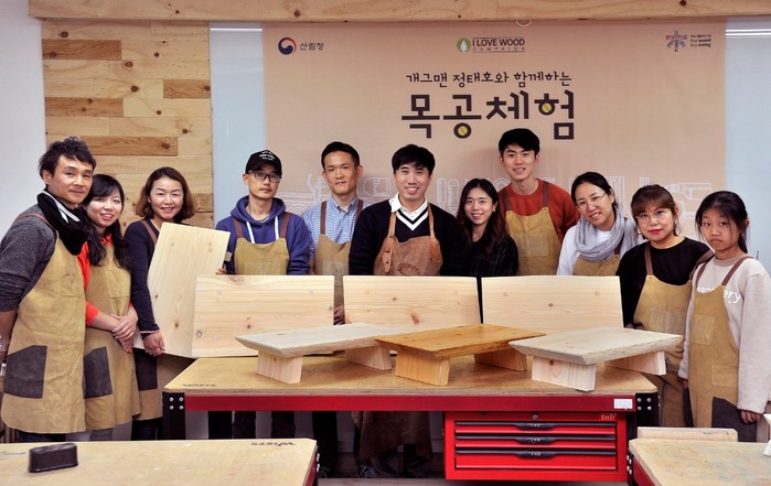 산림청(청장 김재현)은 27일 서울 금천구 목재문화진흥회에서 ‘개그맨 정태호와 함께하는 목공체험’을 개최했다고 밝혔다.