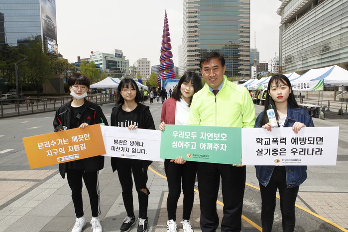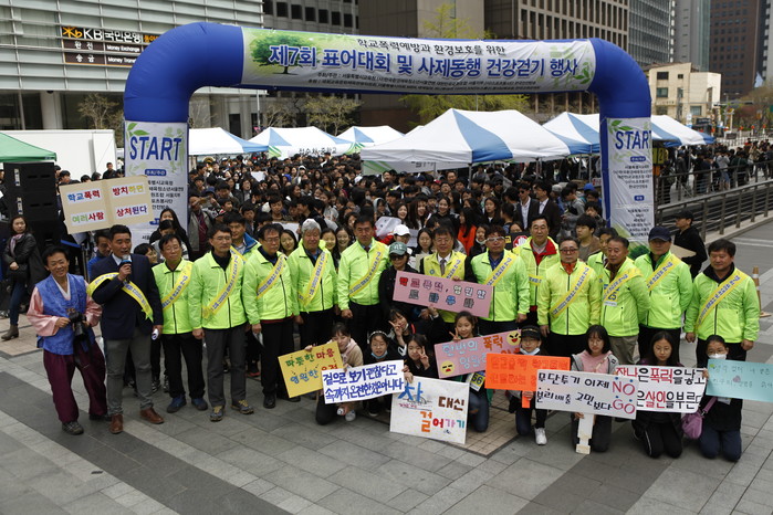 학교폭력예방을 위해 학생과 교사 그리고 학부모가 함께 걸으며 사제간‧가족간의 신뢰와 책임을 공유하는 “제7회 학교폭력예방과 환경보호를 위한 제7회 표어대회 및 사제동행 건강 걷기대회”가 지난 15일 서울 청계광장에서 열렸다.