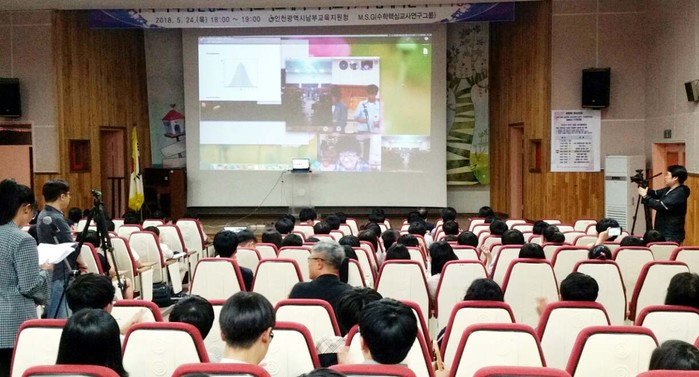 인천광역시남부교육지원청(교육장 공덕환)이 5월 24일(목) 18시부터 19시 30분까지 인천석암초등학교 시청각실에서 인천남부영재교육원 학생(100명), 인천석암초등학교 학생(10명), 학부모(30명), 고등학생(10명), 영재교육원 지도교사(10명) 등 160명이 참가한 가운데 국내 최초로 수학 석학 김민형 박사(영국 옥스퍼드대학 석좌교수)와 함께하는 수학여행 양방향 화상강의를 실시했다.