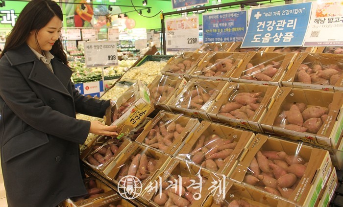 [세계경제]김효숙 기자= 롯데마트는 질병을 예방하고 면역력 강화에 도움을 주는 해남 밤고구마(2kg/1박스)를 6천980원에 판매한다.