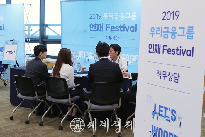 한편, 우리금융그룹은 이달 17일부터 다음달 1일까지 우리은행을 비롯해 우리카드, 우리종금, 우리에프아이에스, 우리신용정보 등 5개 그룹사가 참여하는 「2019년 하반기 그룹공동 신입채용」을 진행하고 있다. 아울러 12월 중순에는 최종 합격한 신입직원들을 대상으로 그룹 공동연수를 진행하는 등 소통과 협업의 조직문화를 통해 그룹 전체의 시너지를 향상 시키는 행보를 계속할 예정이다.
