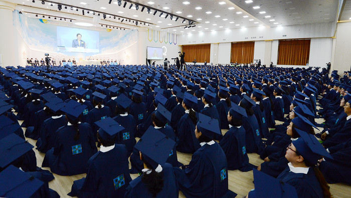이날 신천지 이만희 총회장은 성전을 가득 채운 수료생들에게 “지금까지 성경을 공부하느라 수고가 참 많았다”며 “하나님의 말씀을 배우고 성경을 통달한 우리는 많은 사람들을 옳은 길로 인도해야 한다”고 말했다.