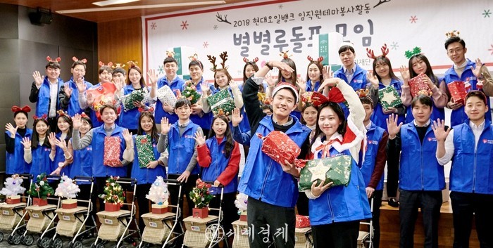 ‘1% 나눔 진지방’은 현대오일뱅크를 대표하는 사회공헌 사업이다. 하루 평균 300명 이상의 65세 이상 어르신들이 이용하는 복지관을 선정, 연간 5천만 원의 식비를 제공한다. 서울과 대전, 서산에 5개의 진지방을 운영하고 있으며 연말에는 서울사무소와 대산공장 직원들이 어르신들이 좋아할만한 선물을 직접 제작한 후 전달하는 ‘별별 산타’, ‘별별 루돌프’행사를 가지기도 한다. 이 밖에도 저소득층 대상으로 연간 4억 원 규모의 난방유를 지원하고 있으며 해외 오지 교육 인프라 개선에도 적극 투자하고 있다. 2013년부터 베트남에유치원과 초등학교, 어린이도서관을 잇따라 건립했으며 올해 3월에는 지진피해를 겪었던 네팔 고르카 지역에 중학교를 완공하기도 했다.