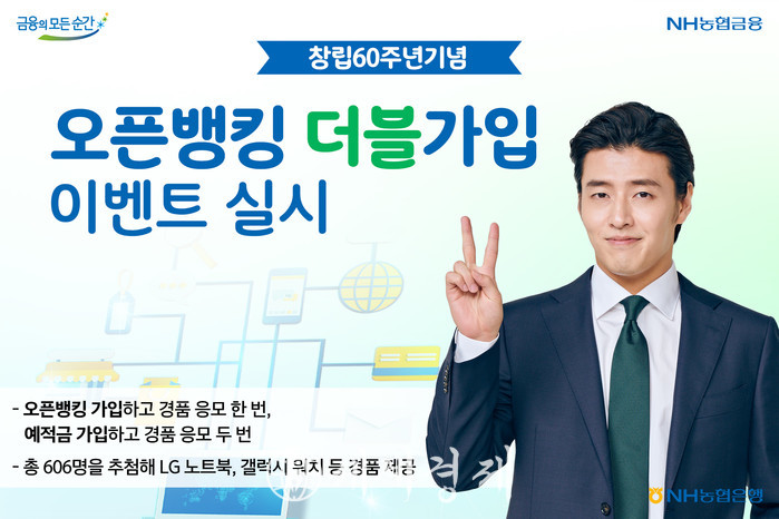 오픈뱅킹을 통해 타행 계좌에서 출금하여 농협은행 예적금 상품에 가입 후 이벤트에 응모한 고객을 대상으로 추첨을 통해 1등 LG그램 노트북(1명), 2등 신세계 모바일상품권 3만원권(10명), 3등 베스킨라빈스 아이스크림 모바일상품권(30명)을 제공한다.