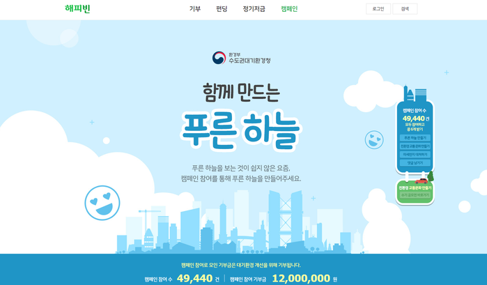 특히 이번 캠페인은 수도권대기환경청의 온라인 공익 캠페인인 '함게 만드는 푸른 하늘 캠페인'을 통해 적립된 기부금으로 진행되며, 약 4만 9천건의 참여수와 1,200만원의 기부금이 조성됐다.