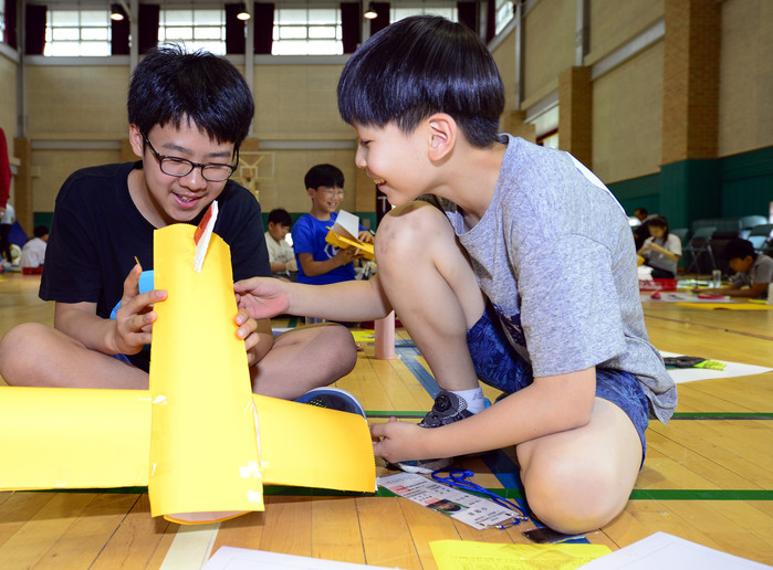 | ▲2018 청소년과학탐구대회에서 학생들이 창의적인 비행체에 대해 고민하고 있다. <사진제공:인천기교육과학연구원> |
